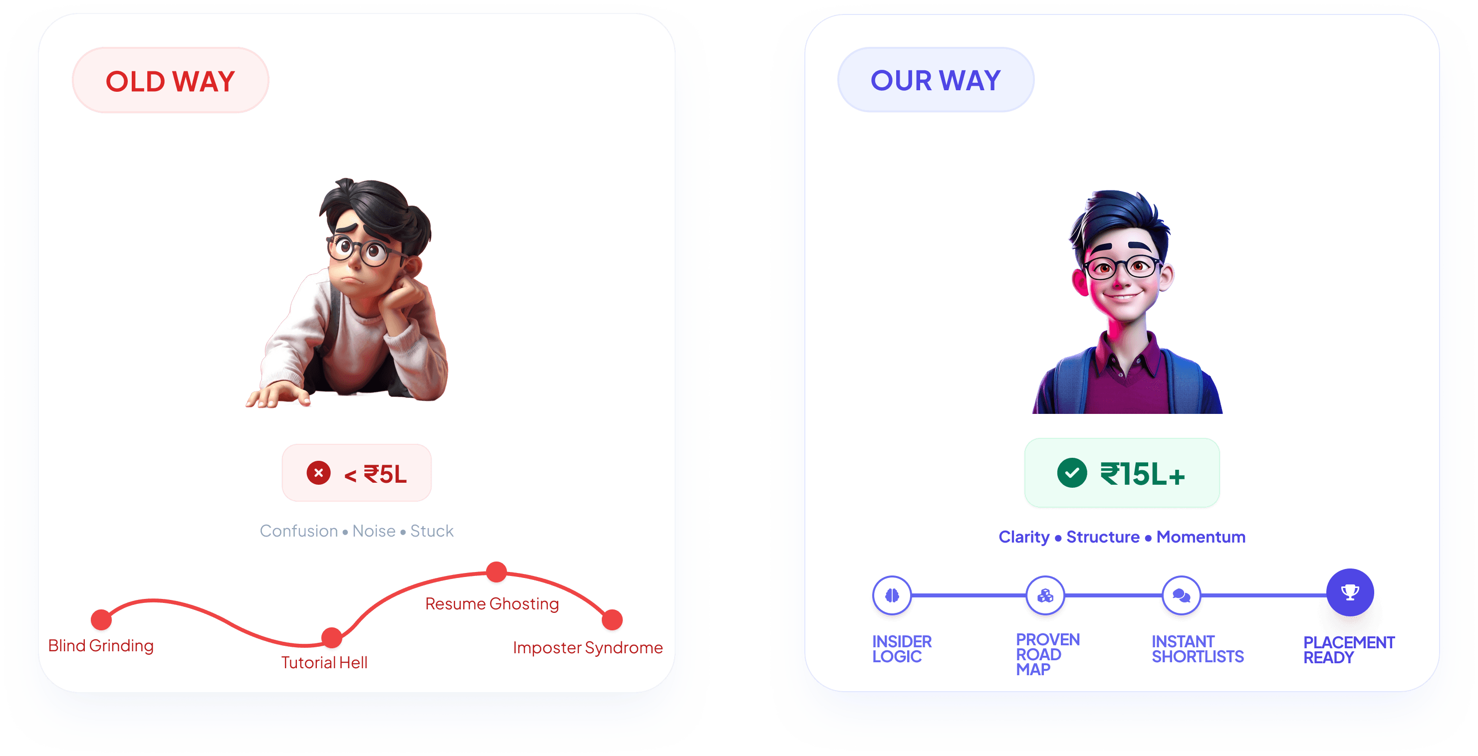 If you’re not placement-ready, we will refund 100% of your money + ₹20,000 for the time wasted.